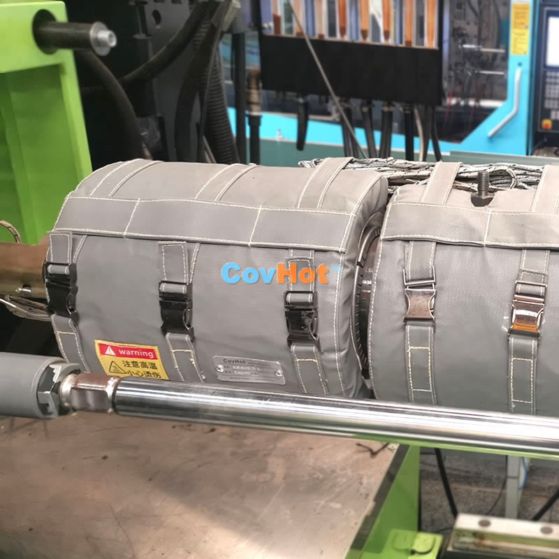 整套保溫套采用模塊化、可拆卸設(shè)計,通過耐高溫的搭扣、綁帶等,可以像“穿衣服”一樣緊密地包裹在注塑機的炮筒、法蘭、噴嘴乃至模具上,既確保全面覆蓋,又便于快速拆卸進行設(shè)備維護、清料或更換螺桿。