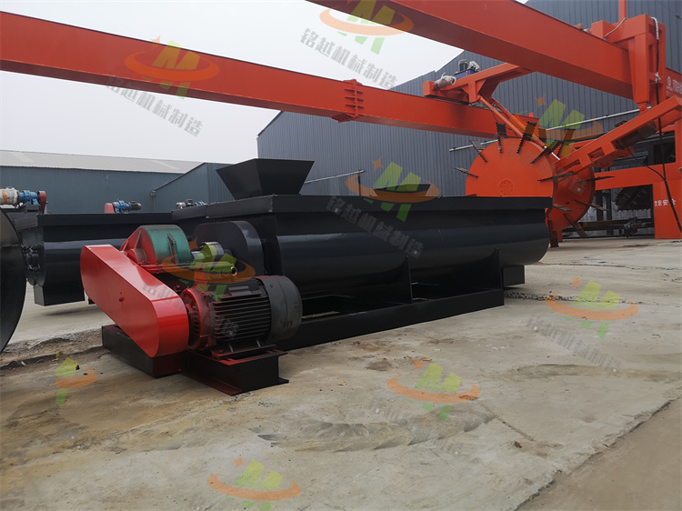 雙軸攪拌機(jī)利用兩根呈對(duì)稱狀的螺旋軸的同步旋轉(zhuǎn),在輸送干灰等粉狀物料的同時(shí)加水?dāng)嚢瑁鶆蚣訚窀苫曳蹱钗锪希_(dá)到使加濕物料不冒干灰又不會(huì)滲出水滴的目的,從而便于加濕灰裝車運(yùn)輸或轉(zhuǎn)入其它輸送設(shè)備。該機(jī)具有結(jié)構(gòu)緊湊,攪拌均勻,無揚(yáng)塵,符合要求等優(yōu)點(diǎn)。雙軸攪拌機(jī)內(nèi)裝有雙軸旋轉(zhuǎn)反向的漿葉,漿葉成一定角度將物料沿軸向、徑向循環(huán)翻攪,使物料迅速混合均勻臥式混合機(jī)性能特點(diǎn)減速機(jī)帶動(dòng)軸的旋轉(zhuǎn)速度與槳葉的結(jié)構(gòu)會(huì)使物料重力減弱,隨著重力的缺乏,各物料存在顆粒大小、比重懸殊的差異在混合過程中被忽略。激烈的攪拌運(yùn)動(dòng)縮短了一次混合的時(shí)間,更快速、更高效。豬糞雙軸濕式攪拌機(jī) 雞糞有機(jī)肥拌料機(jī) 牛糞污泥混合攪拌機(jī)